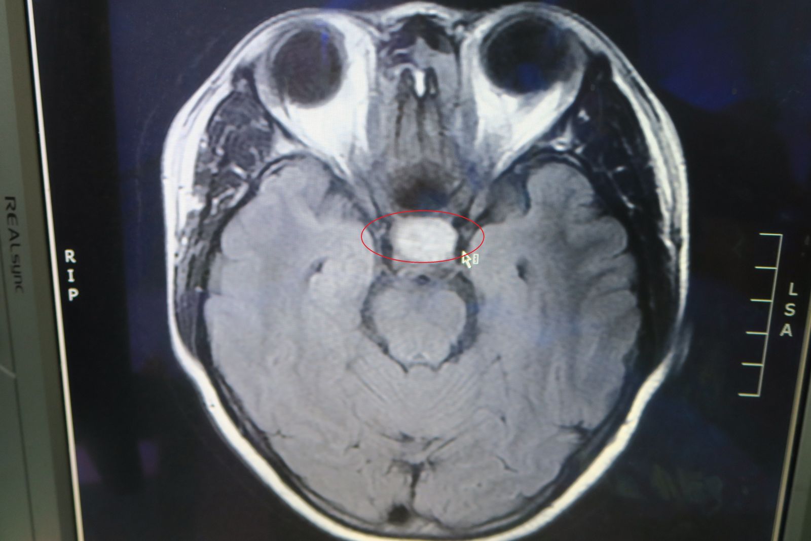 趙紹清說,經腦部核磁共振儀每年追蹤檢測患者,5年後患者的腫瘤已經大到2公分,還壓迫到視神經,進而影響視力,兩眼靠近外側的視野已經變小,一定要手術去除腫瘤,如果不處理,不僅生活中處處是危險,當神經壓迫越來越嚴重,眼睛還有可能失明,屆時再處理可能來不及了。