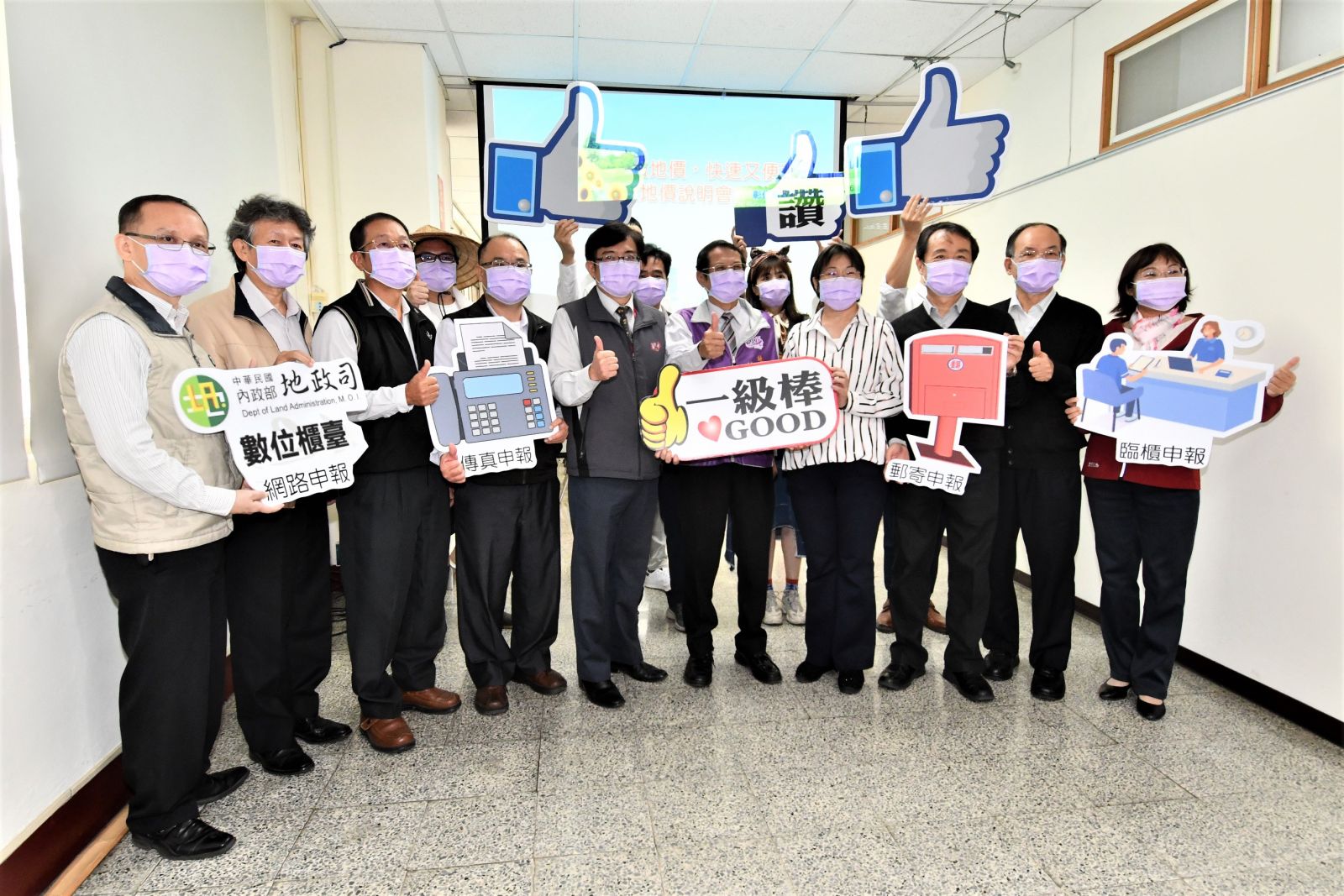 ▲地政處長蔡和昌今(5)日上午率全縣8個地政事務所主任,在縣府6樓新聞處前咖啡藝廊舉行多元管道申報地價說明。
