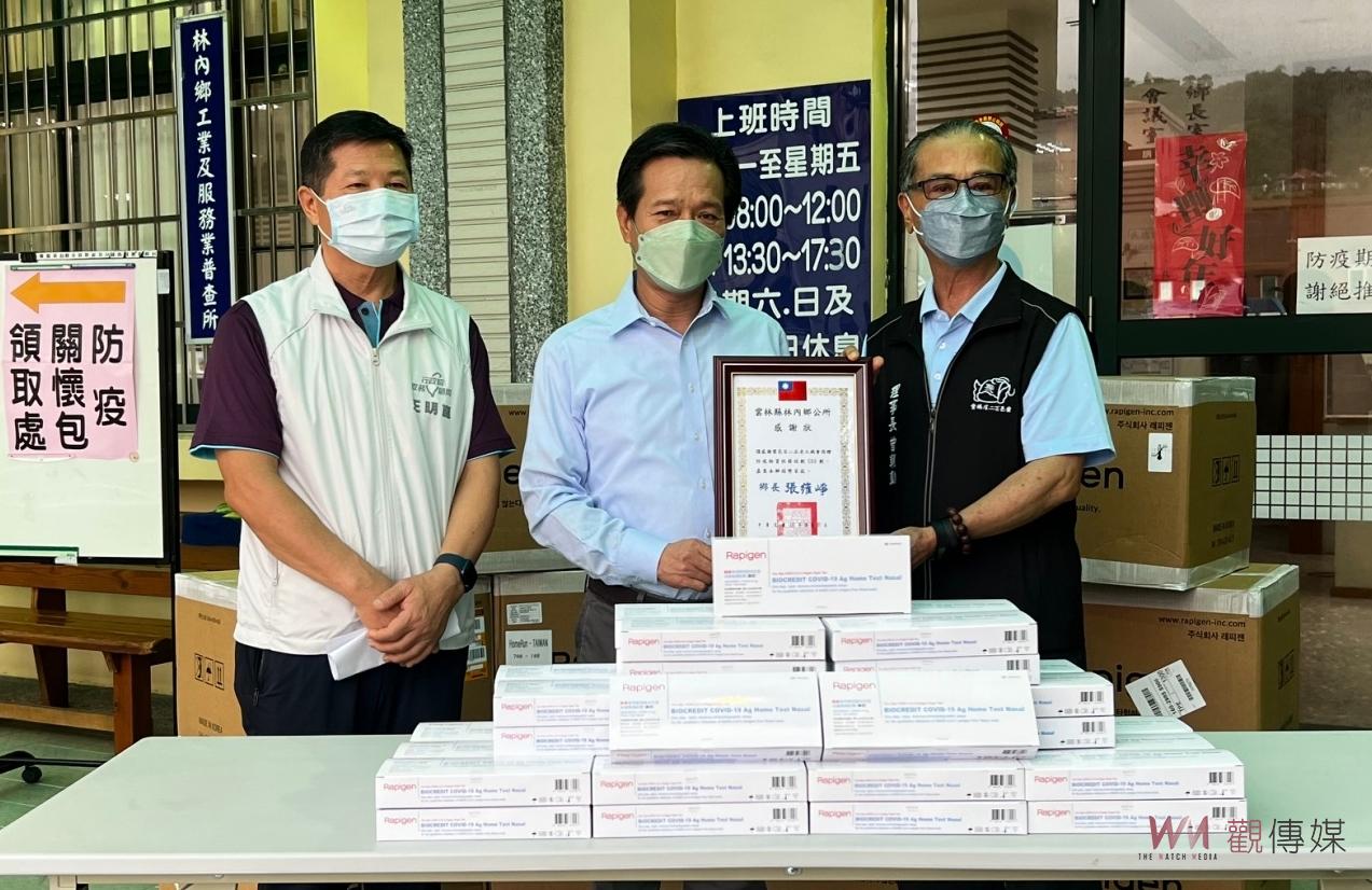 (雲林新聞)【記者蘇榮泉/雲林報導】國內新冠疫情持續延燒,當「快篩陽性即確診」政策正式上路,民眾對家用快篩試劑需求也大增,百二庄媽會為協助林內鄉弱勢家戶防疫,今7日由理事長曾朝勤、行政院顧問王明崑等人代表捐贈快篩劑500劑給林內鄉公所協助鄉內弱勢家庭,林內鄉公所鄉長張維崢代表林內鄉親致贈感謝狀,並感謝百二庄媽會熱心公益溫暖善舉。