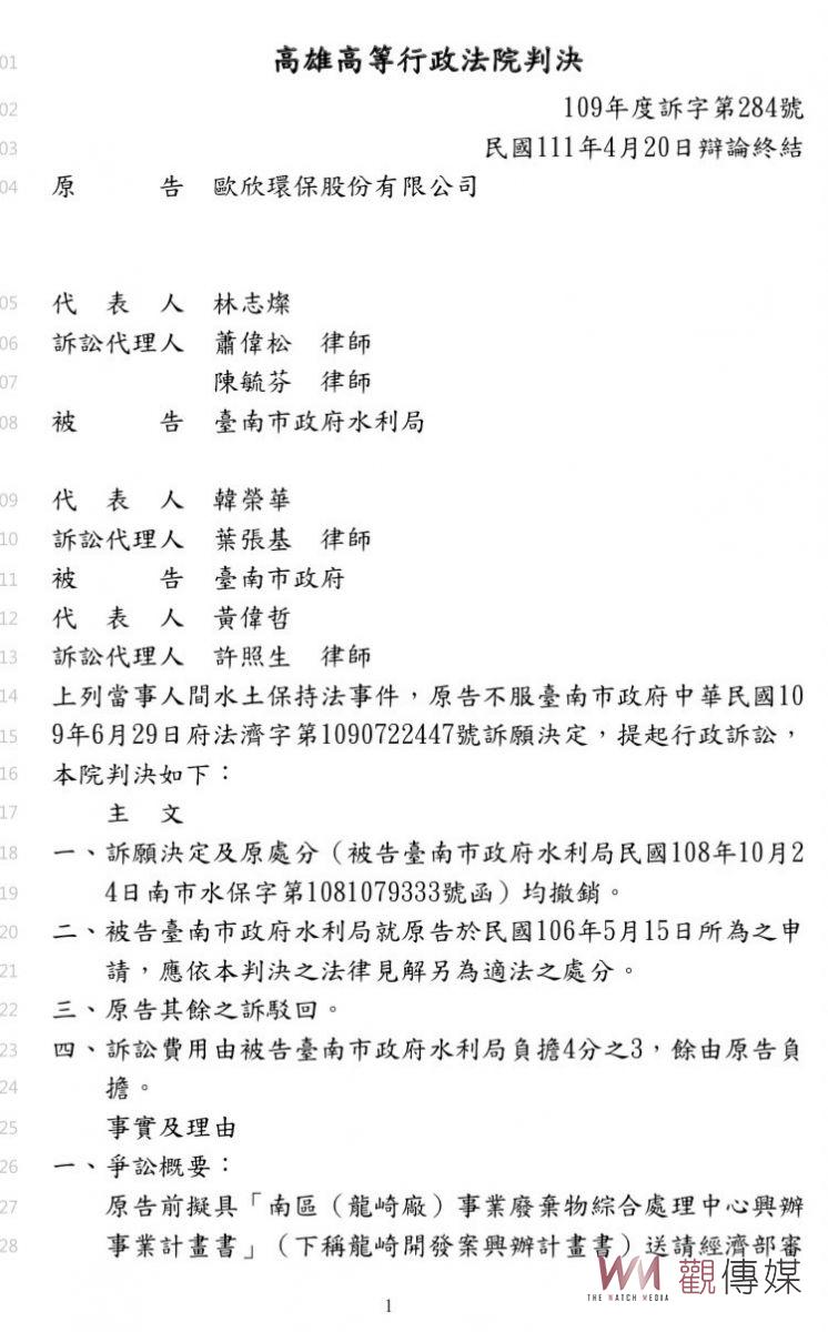 ▲歐欣公司提行政訴訟,南市府敗訴。