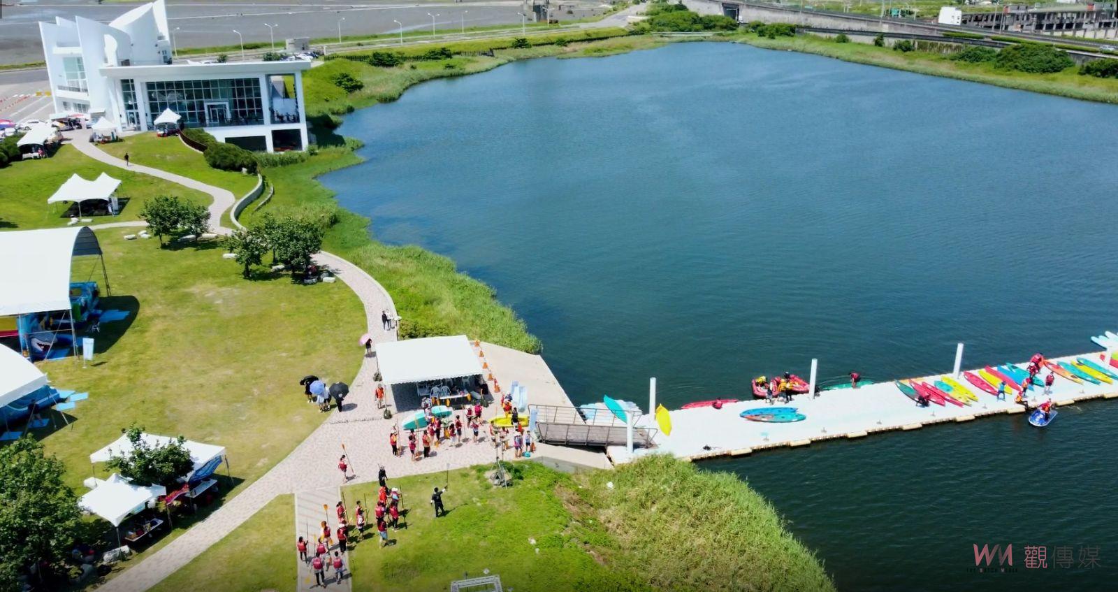 ▲彰化縣政府舉辦「彰濱~海FUN一夏」慶安水樂園活動,首次推出水上自行車、龍舟板SUP以及今夏最「鯨」喜的海洋生物在慶安水道與大家同樂。