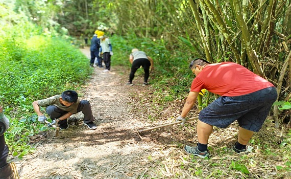 (觀傳媒南投新聞)【記者石振賢/南投報導】南投林區管理處與澀水社區、台灣千里步道協會於15日舉辦魚池鄉澀水森林步道「手作步道工作假期」,60多名愛好生態的志工參與,並考量當地氣候、地質、生態特性,以人力方式修築並改善步道,參與志工說:「雖然滿身泥巴還有汗臭味,但自己親手完成步道,讓遊客能體驗、安全通過,真的很有成就感。」
