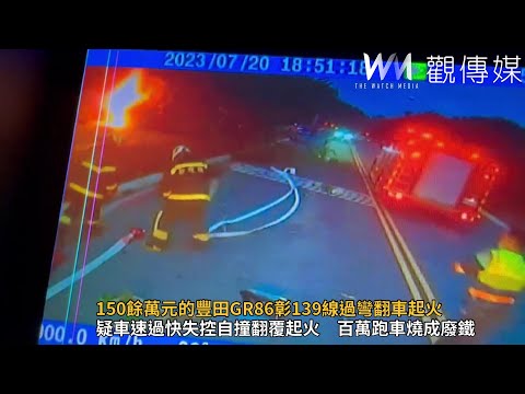 1輛要價150餘萬元TOYOTA GR86小跑車20日晚間,行經彰化市139線虎崗路疑似車速過快,轉彎時衝撞右側路樹並把整棵樹撞斷後翻覆,瞬間噴火燃燒,後方用路人見狀紛紛停車,擔心駕駛是否受困車內上前幫忙,發現假使受困車內趕緊將他拉出車外,火勢也愈燒愈大,整輛車被大火吞噬,肇事現場一片狼藉。