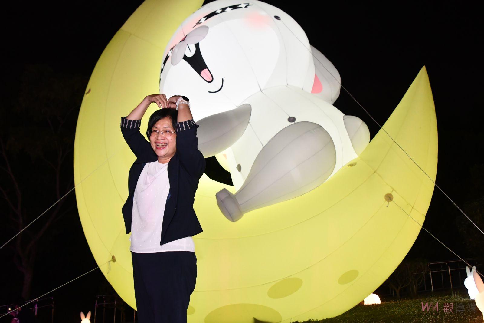王惠美表示,彰化月影燈季每年在八卦山大佛風景區舉辦,迎接建縣300年及癸卯兔年之際,「2023彰化月影燈季」特別不一樣,今年最大亮點就是與LINE貼圖人氣IP好想兔合作的地景裝置,各種造型的好想兔。