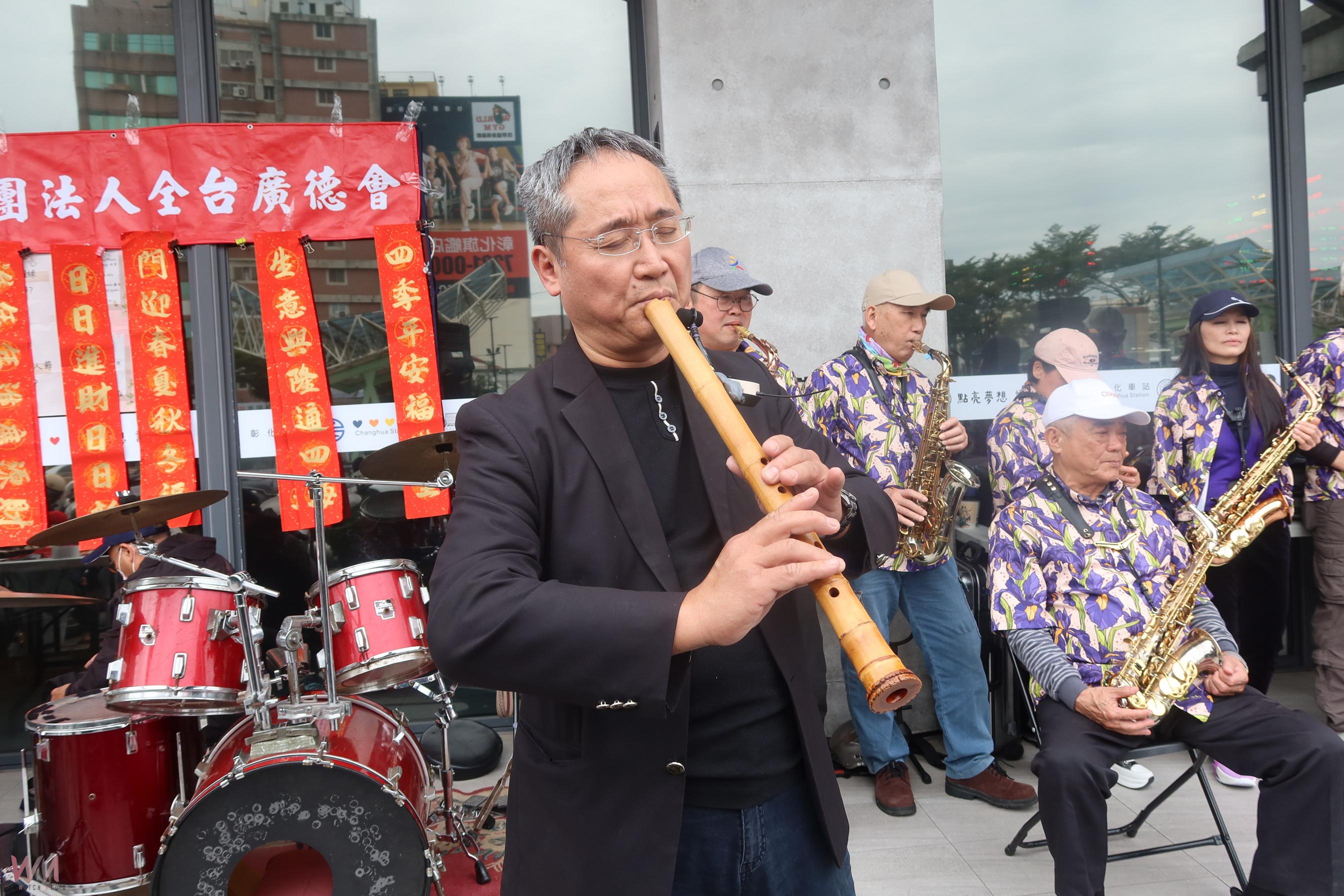 現場還有Lisa薩克斯風樂團演奏,悠揚的樂聲為活動增添了更多的藝術氛圍。市民們在音樂中品嚐由中華鳳山古寺聖王會提供的現烤紅豆餅、養生飲品,並可享受專業按摩放鬆服務,整個活動空間洋溢著溫馨、歡樂的過年氣氛。