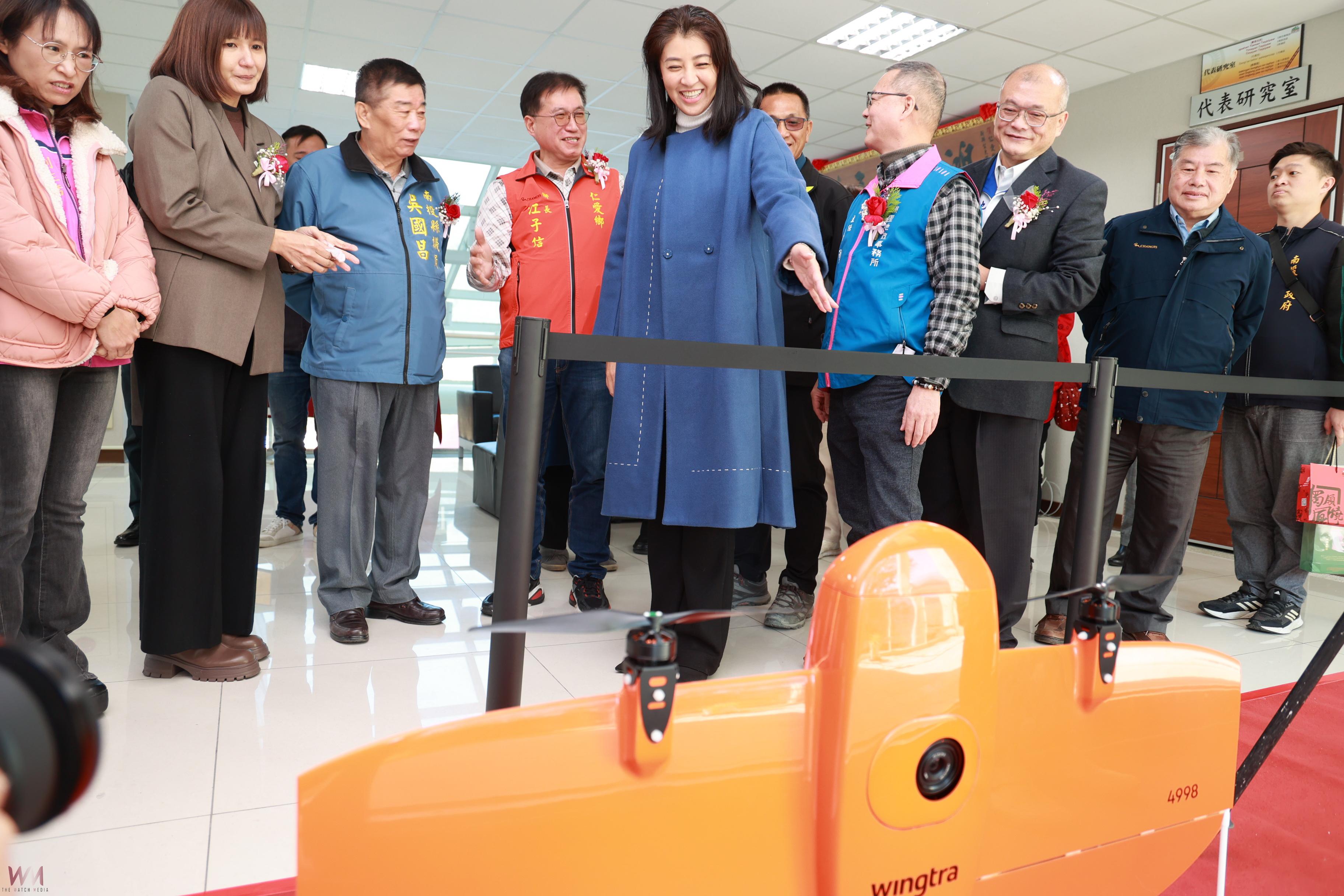 仁愛鄉測量工作站辦公室設在代表會2樓,安排3組測量人力,並配置無人機,衛星定位儀、經緯儀等相關測量儀器,提供更快速、便利的測量服務,縮短案件辦理時程。許縣長等人一起為測量工作站揭牌後,隨即查看辦公場所及測量設備。