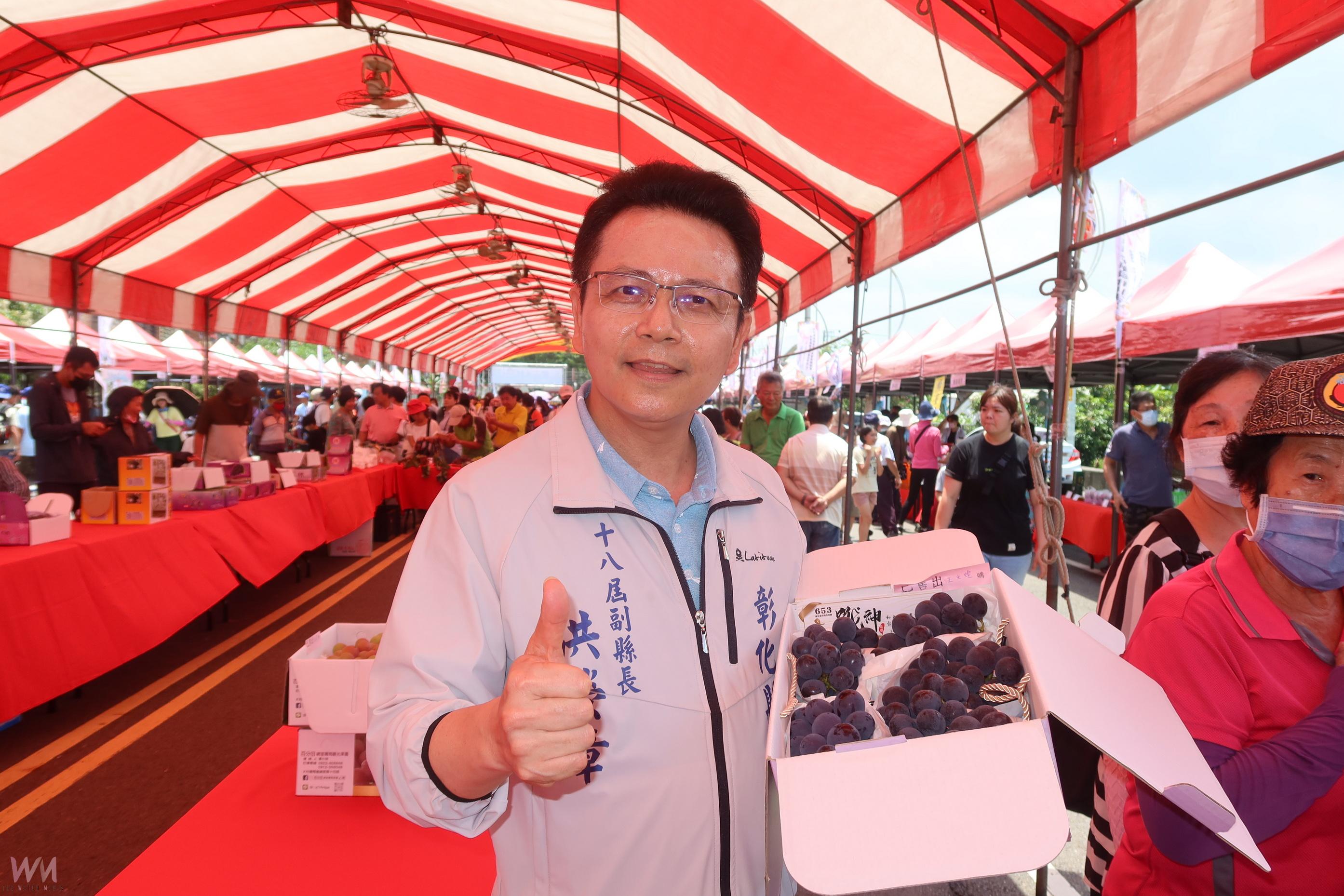 彰化縣長王惠美表示,彰化縣素有「葡萄的故鄉」美譽,種植面積達1,100公頃,其中大村鄉就佔了近400公頃,產量佔全縣三分之一,是全台最大的巨峰葡萄產地之一。她說:「全國每兩顆巨峰葡萄,就有一顆來自彰化;每四顆,就有一顆來自大村。」呼籲民眾踴躍支持在地農產品,吃當季、食在地,共同守護台灣農業。