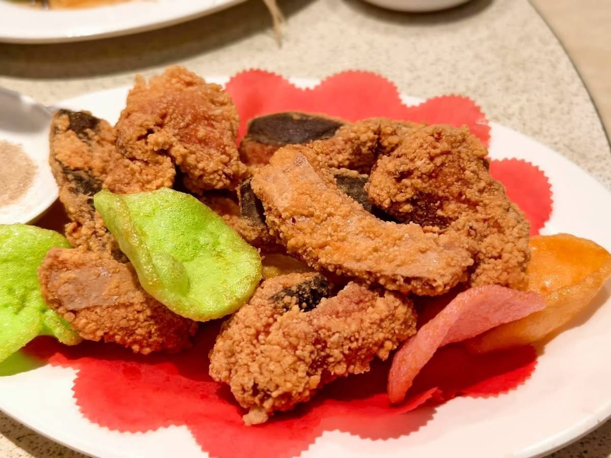 鵝肉是餐廳的核心靈魂。鵝腿肉質滑嫩,皮香油潤;鵝頭與鵝脖則是老饕最愛,用來慢慢啃吮最過癮;鵝掌膠質豐厚,鵝翅鹹香入味,最適合佐酒。搭配九層塔、薑絲與店家特製的鹹甜醬料,一口下去,鹹香與清爽交錯,立刻成為記憶中的「鵝肉城味道」。