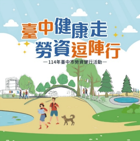 為鼓勵市民走出戶外參與正當休閒活動,紓解工作壓力並促進身心健康,台中市政府勞工局於12月13日(星期六)上午7時在台中中央公園舉行114年勞資健行活動,歡迎全市勞資朋友攜家帶眷逗陣健行、健康樂活。