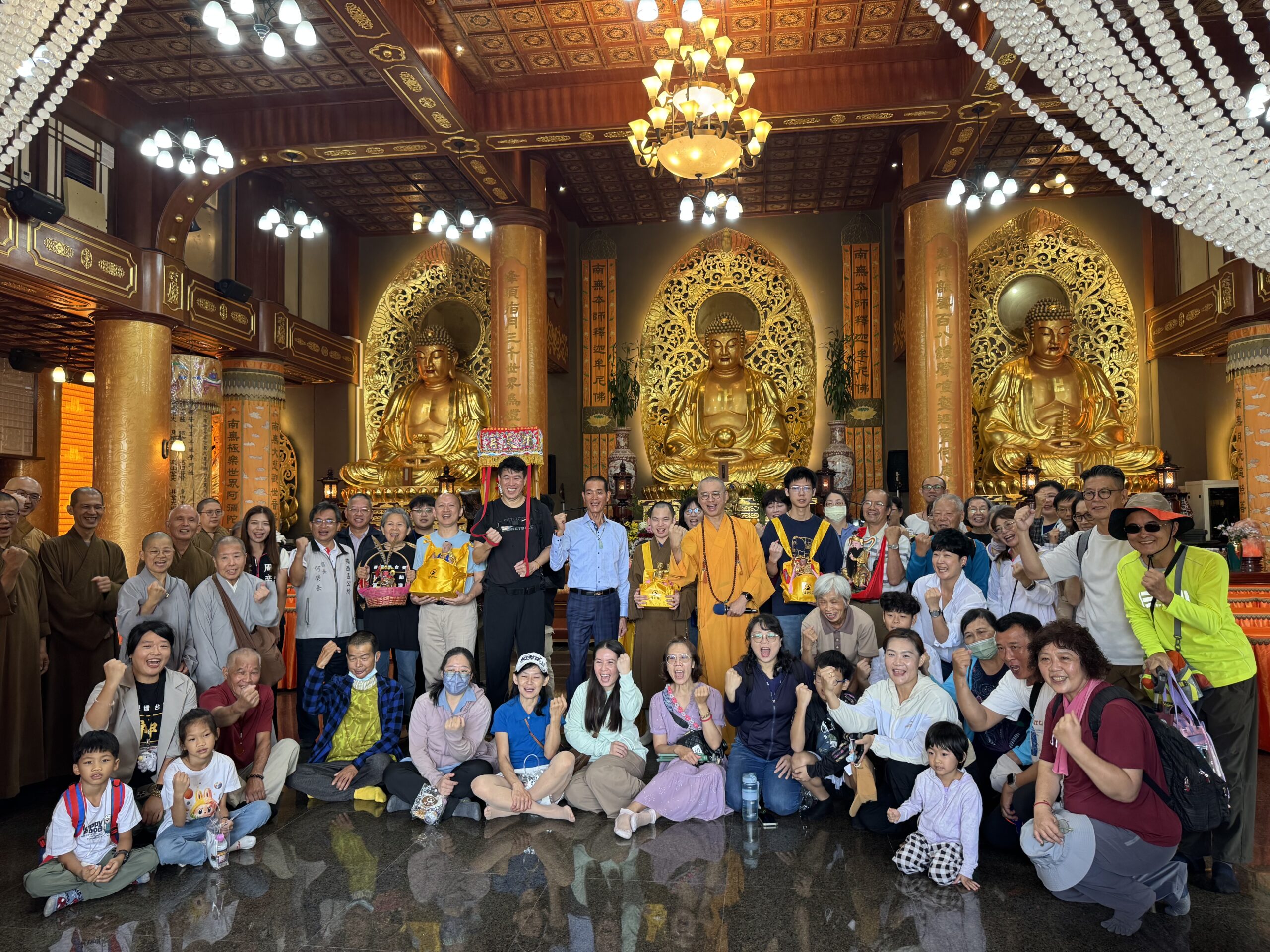 北港朝天宮11月16日 「南都巡歷」起駕前,蔡咏鍀董事長特別與登上玉山的「黑面媽祖」先來楠西萬佛寺參加健走,為楠西鄉里護佑平安,全程包含林俊憲委員、郭國文委員、陳亭妃委員、何榮長區長、周奕齊議員夫人等社會賢達一起參加活動,為楠西祈福,也為宗教善良與宗教常識教育宣導。