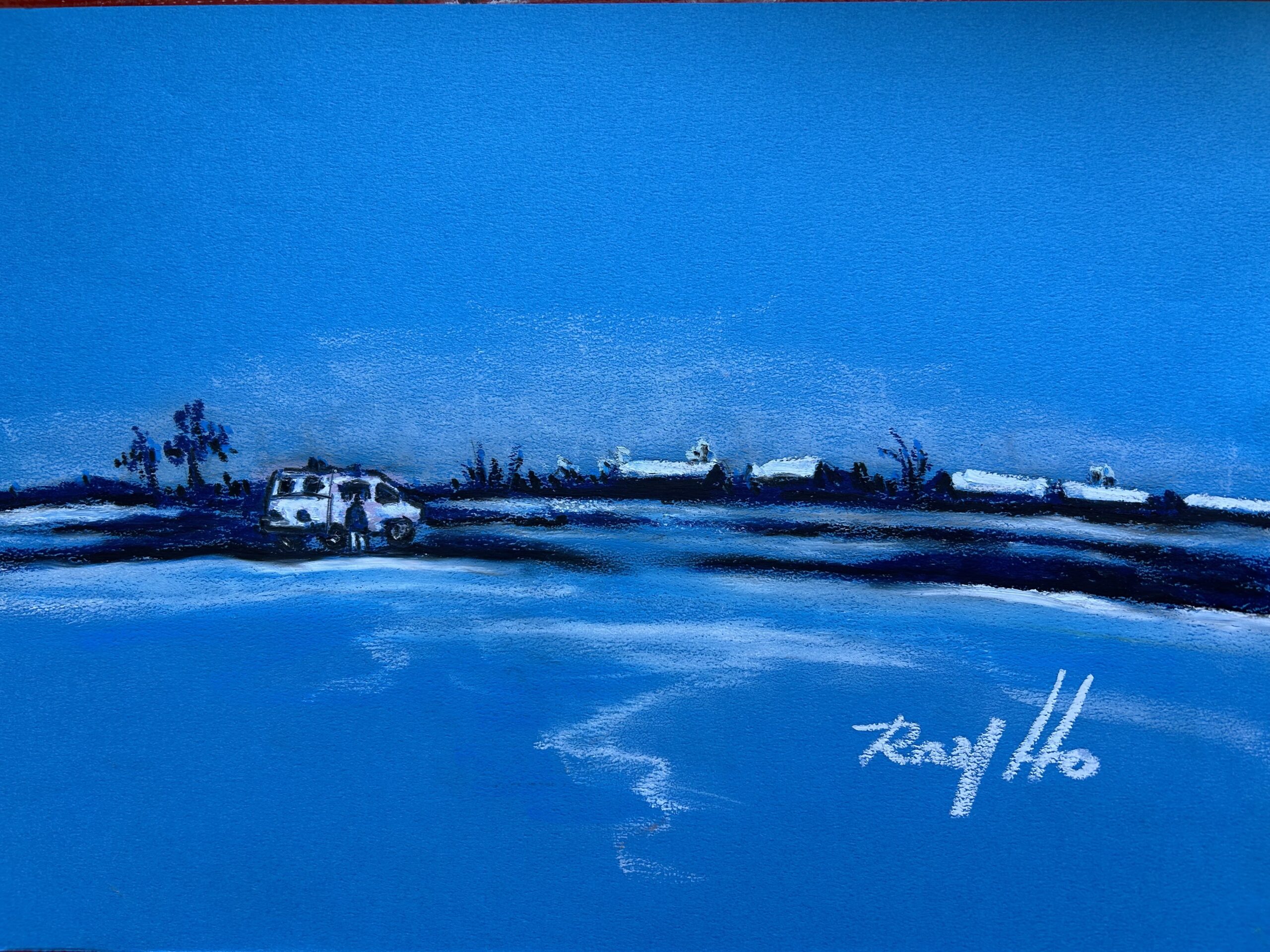 廣角鏡頭定在一望無際的荒漠上, 殘雪還被睡眼惺忪的冬天捧在手掌上, 蜿蜒的公路有如巨蟒靜靜地卧在大地之上。