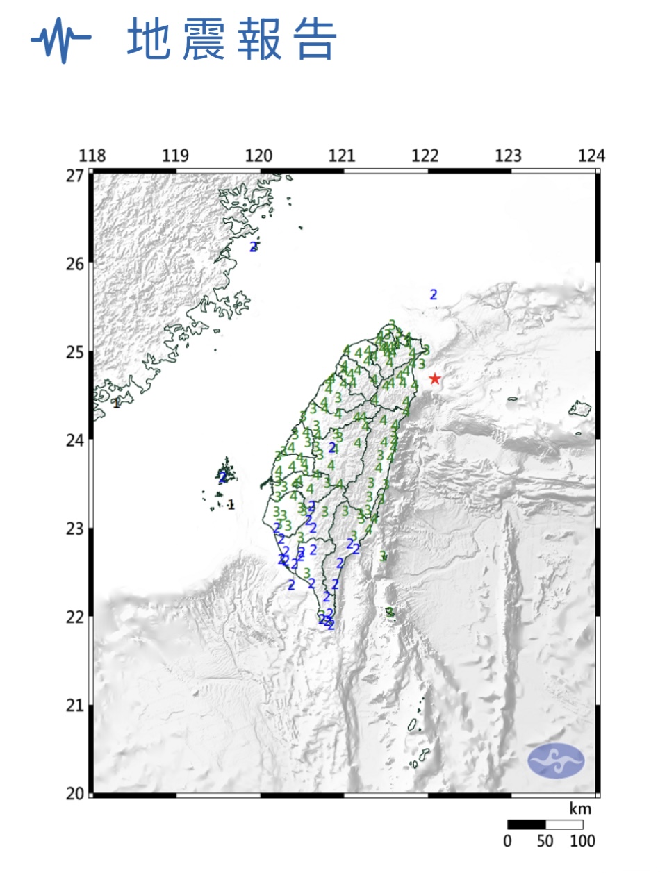 【記者朱立君/綜合報導】中央氣象署今(27)日晚間發布第156號顯著有感地震報告指出,今晚23時05分55秒,台灣東部海域發生規模7.0地震,震央位於北緯24.69度、東經122.08度,約在宜蘭縣政府東方32.3公里處,地震深度72.8公里,屬中深層地震,全台多地明顯有感。