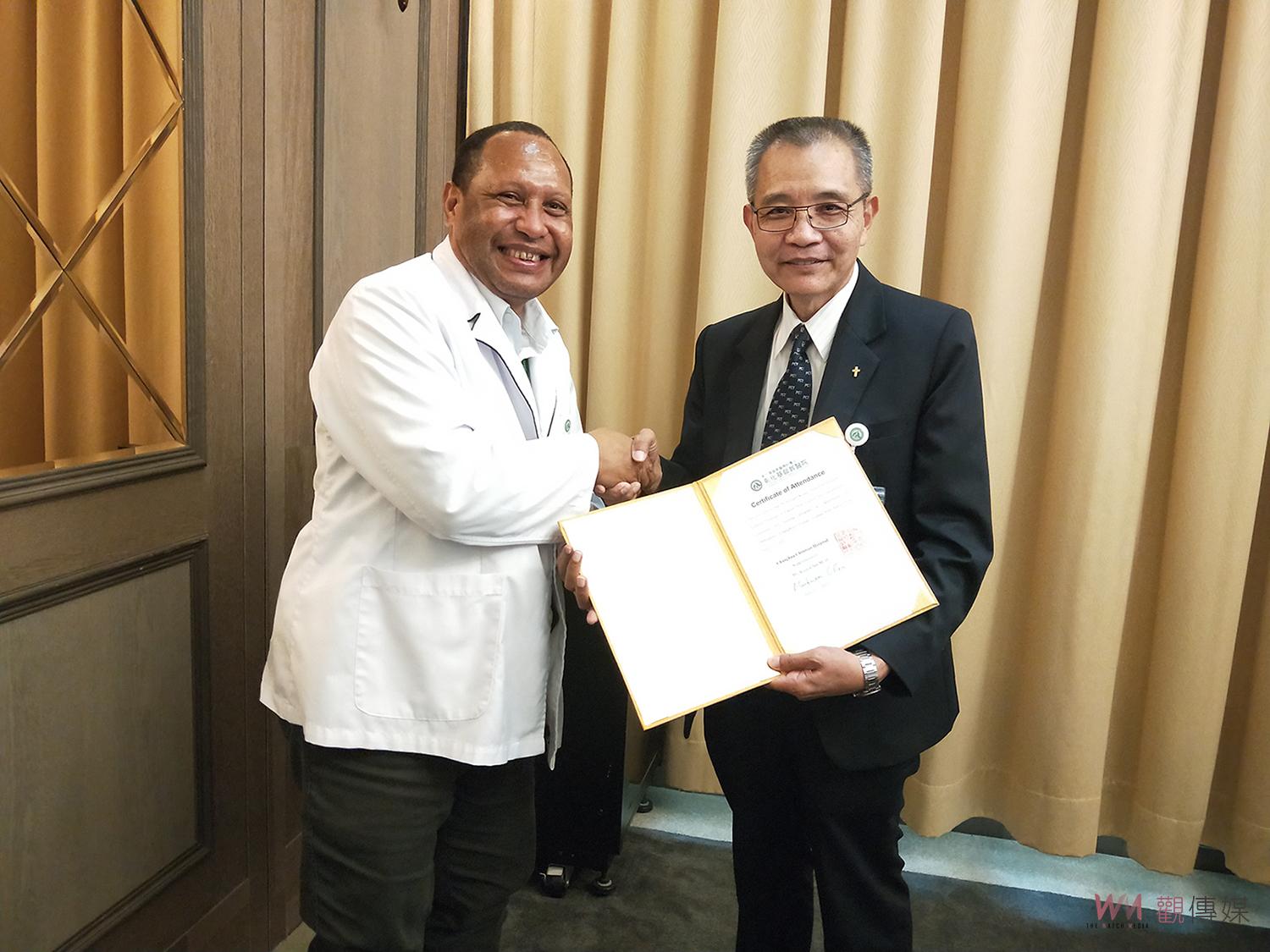 研討會結束後,彰基院長陳穆寬教授與董事長吳瑞鵬長老,為兩位學成的醫師頒發結業證書,為三個月的實習畫下一個完美的句點。