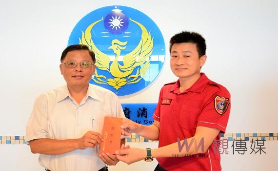消防局局長許文光特別頒發獎勵金,嘉勉許朝琳、陳志彬,期許同仁們致力於提升到院前緊急救護品質,加強救護技術員之專業訓練,並與醫院端合作無間,串起生命之鏈,爭取病患的搶救時間,持續提升本縣急救成功率。